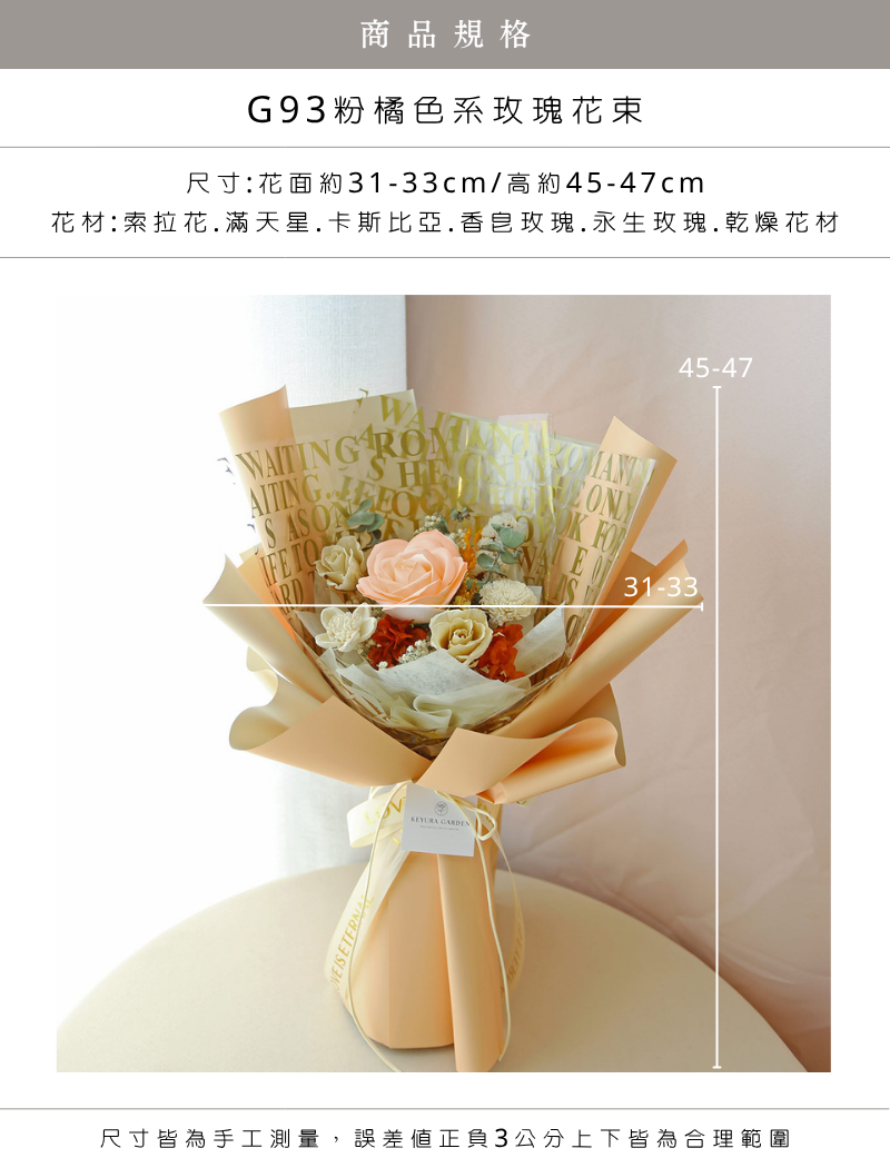 ≣ G93粉橘色系玫瑰花束
