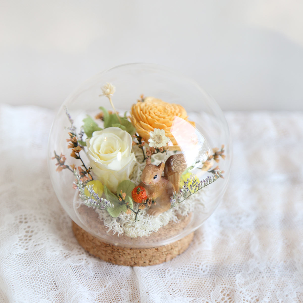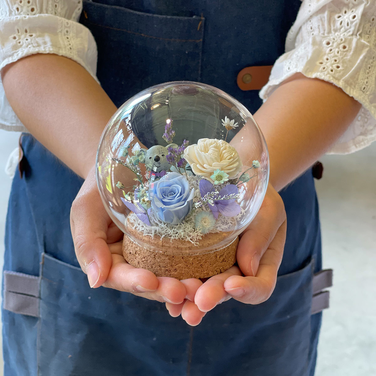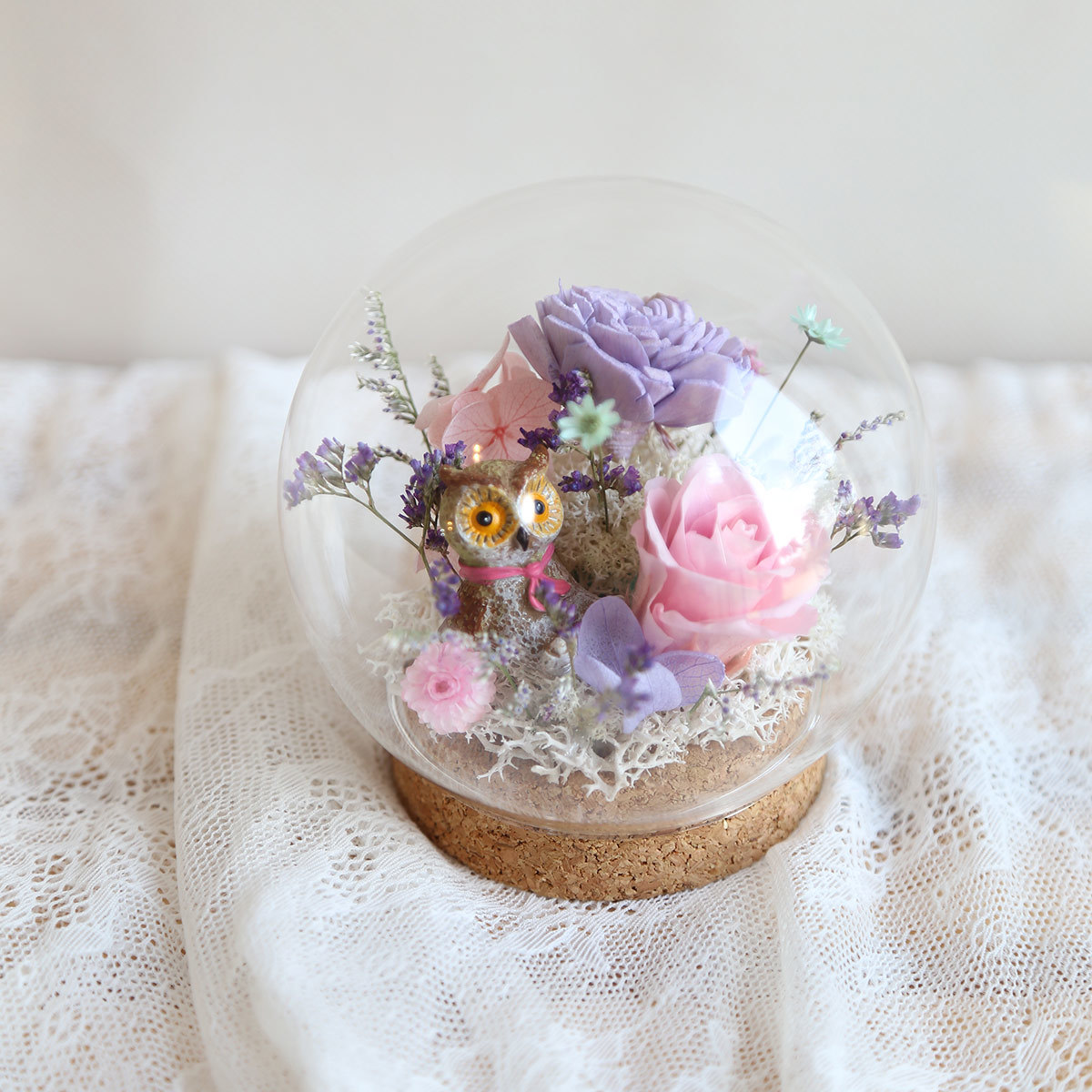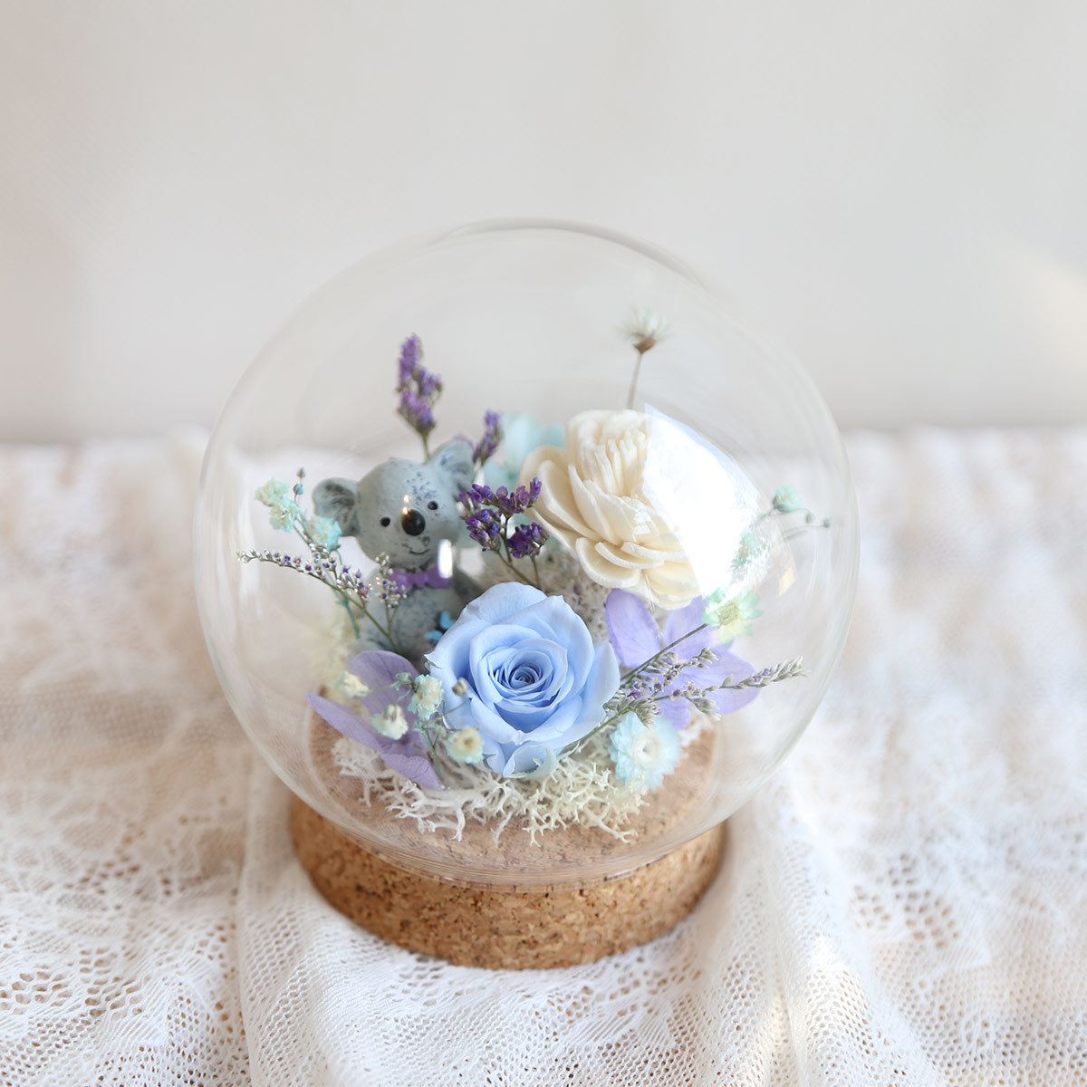 乾燥索拉玫瑰.永生花玫瑰.繡球搭配乾燥花材製作而成