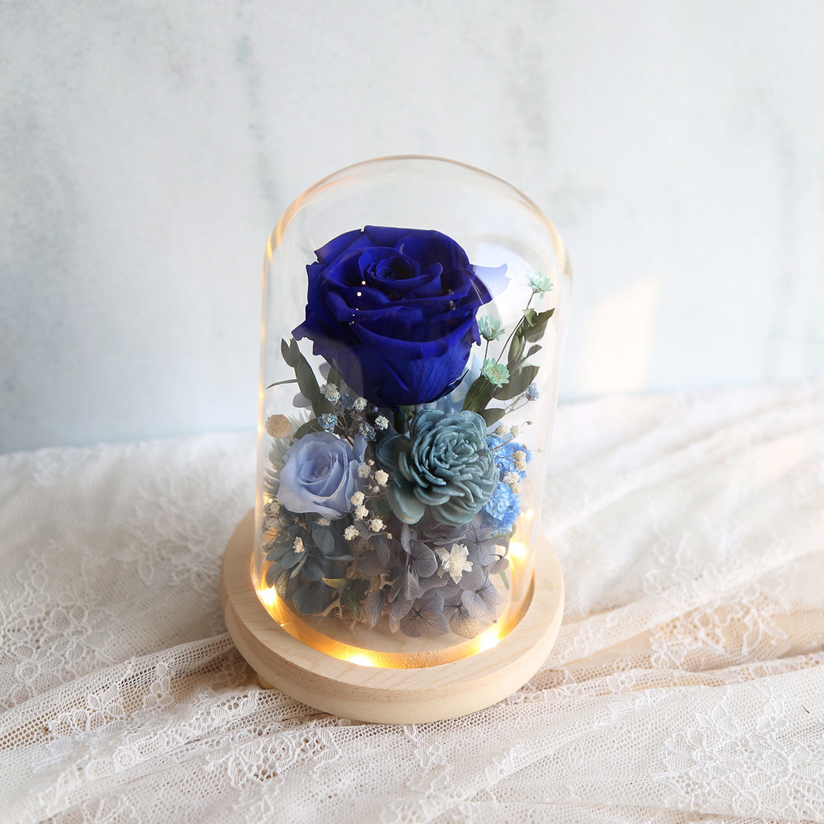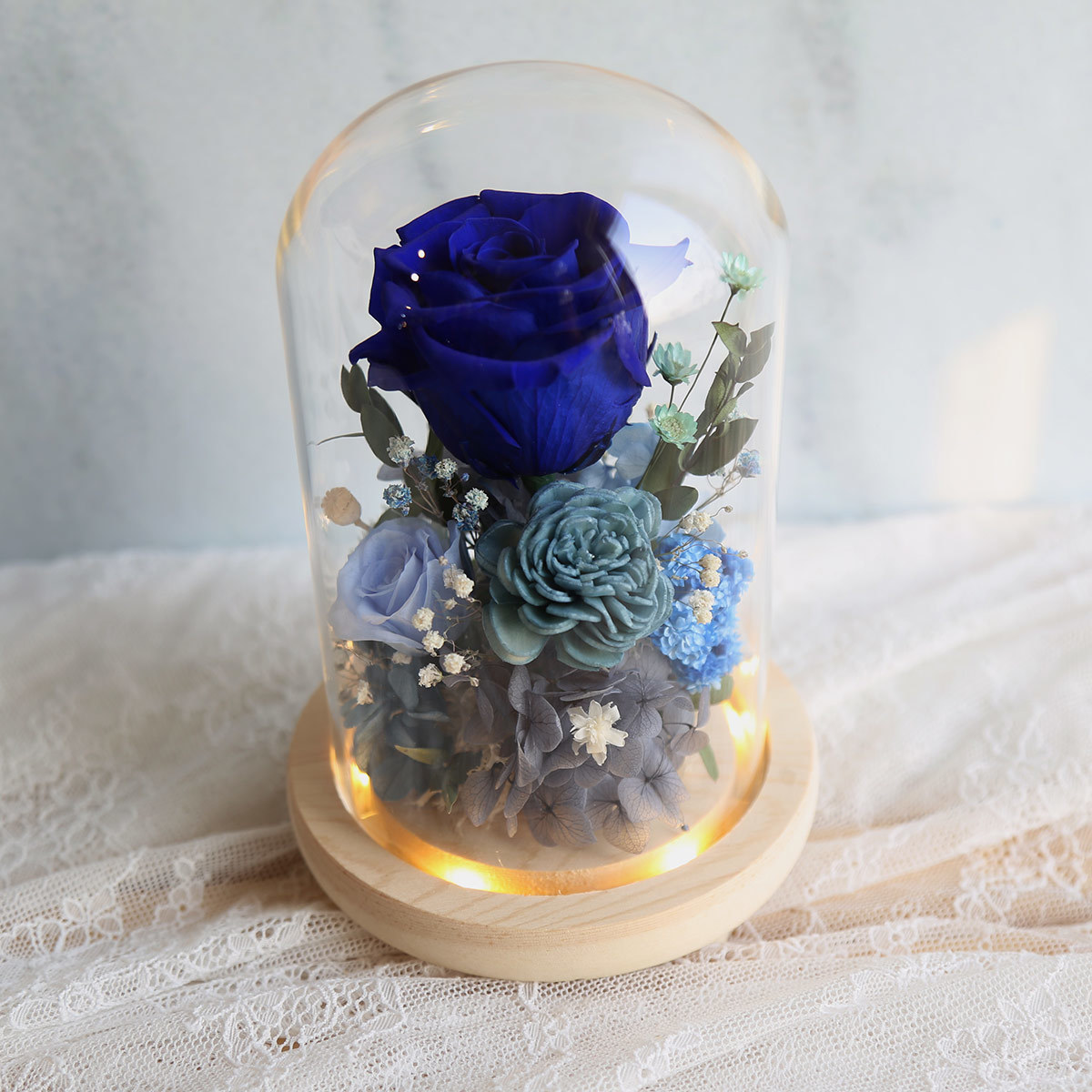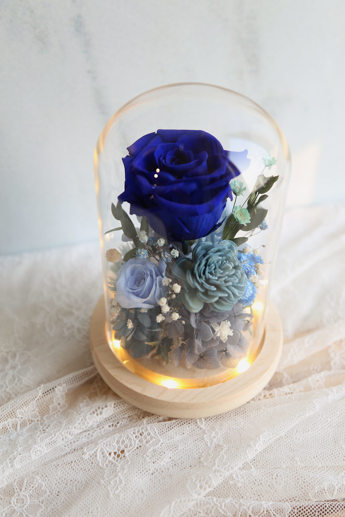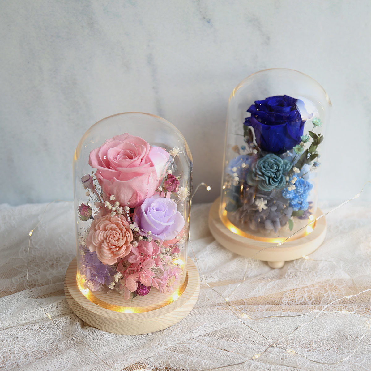 由永生花玫瑰.繡球.星辰花.旱雪蓮.水晶草製作而成的罩盅
