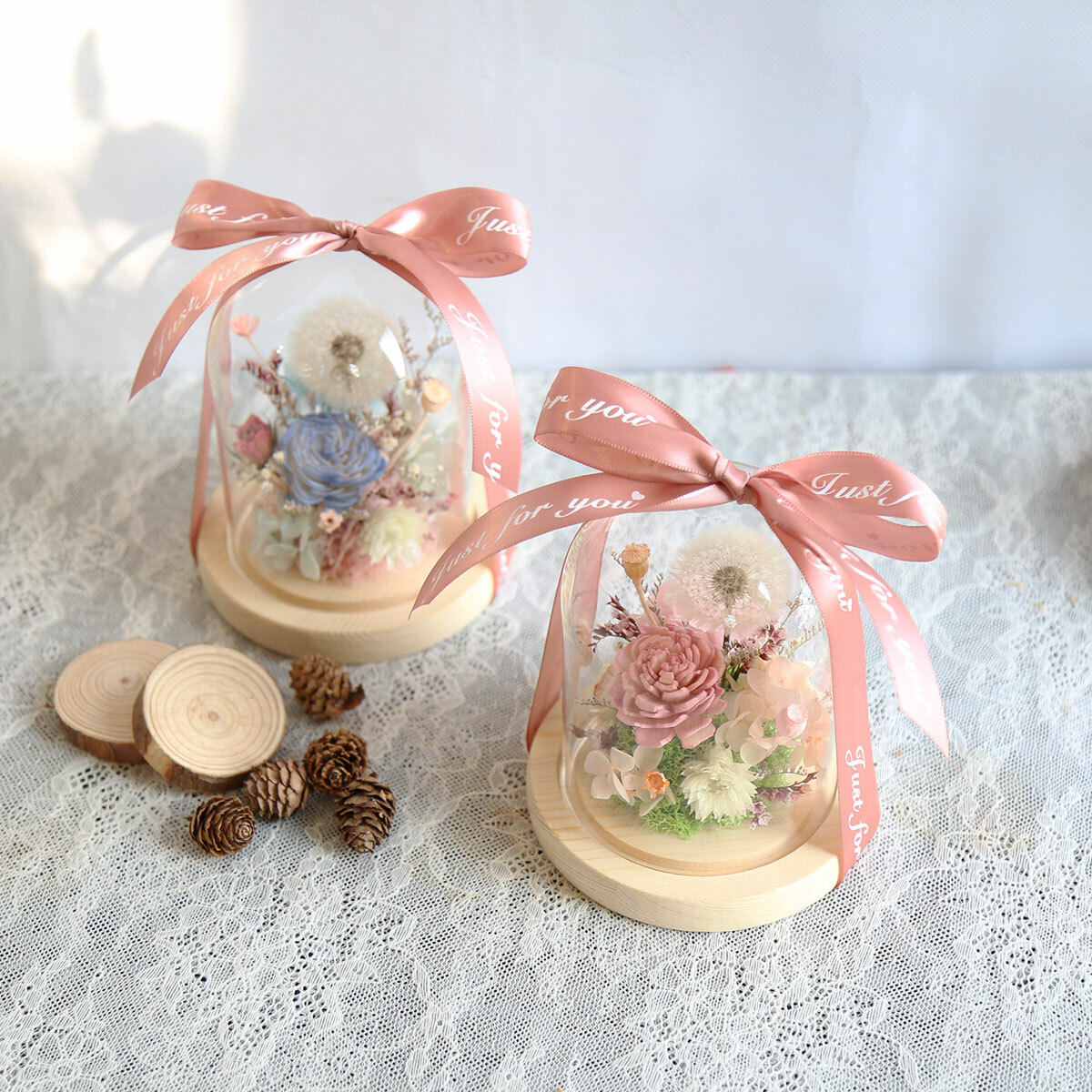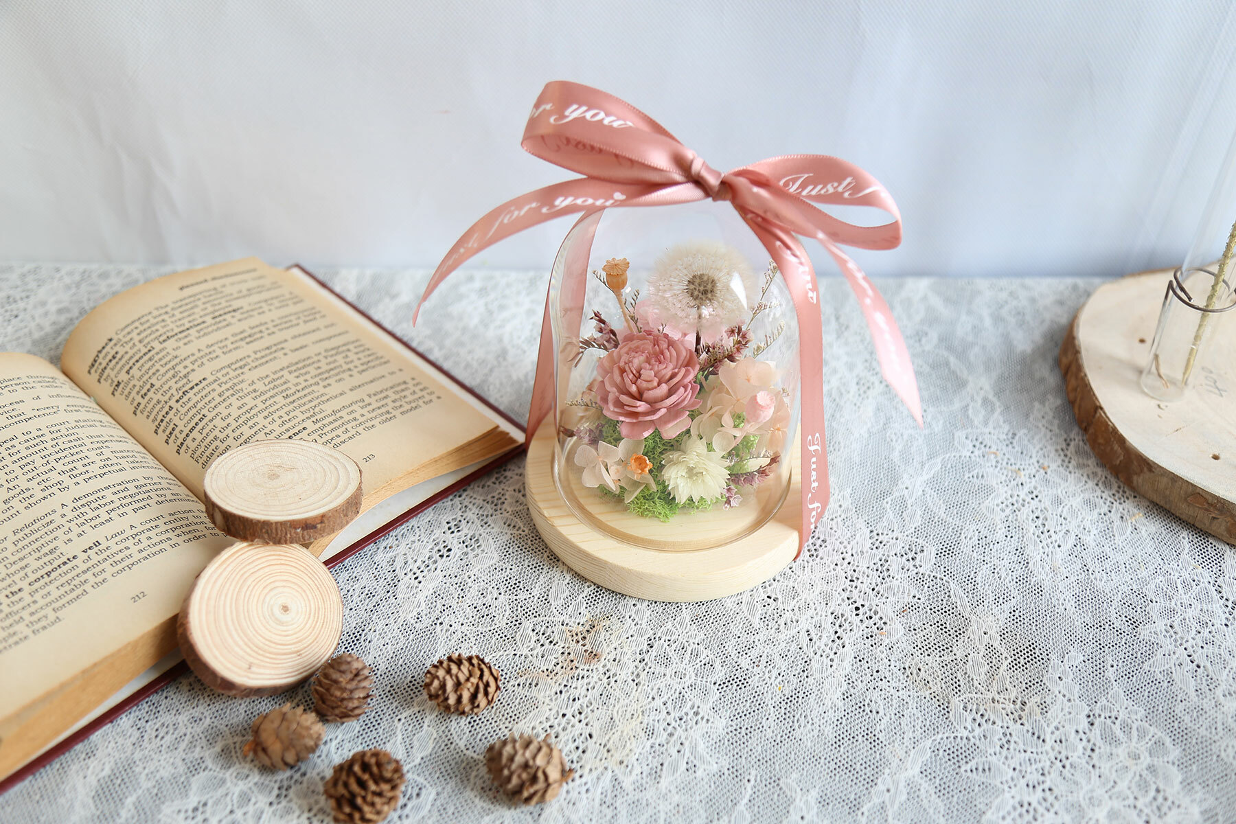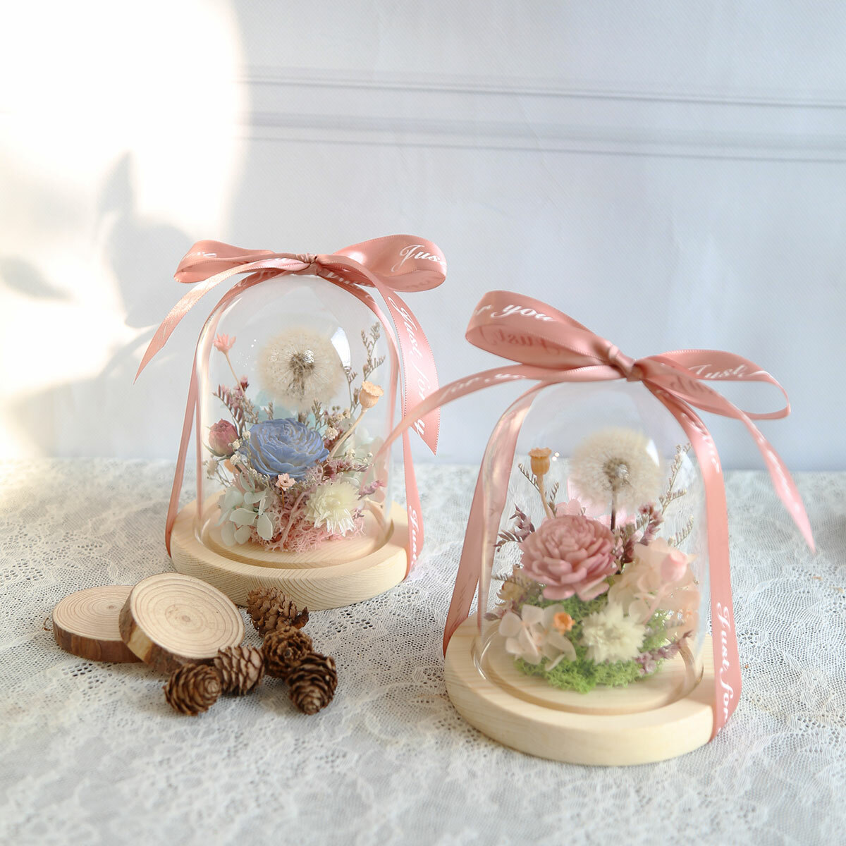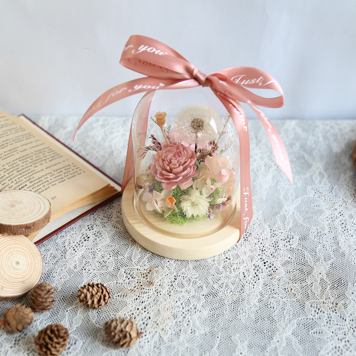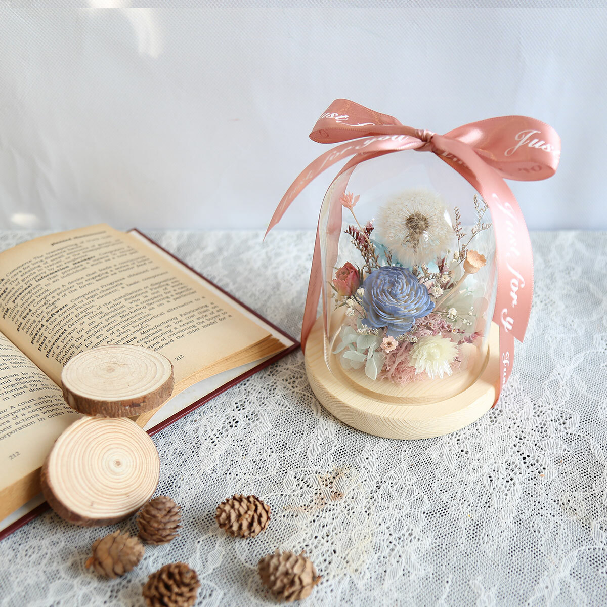 由永生花蒲公英.繡球.小百合製作而成的罩盅