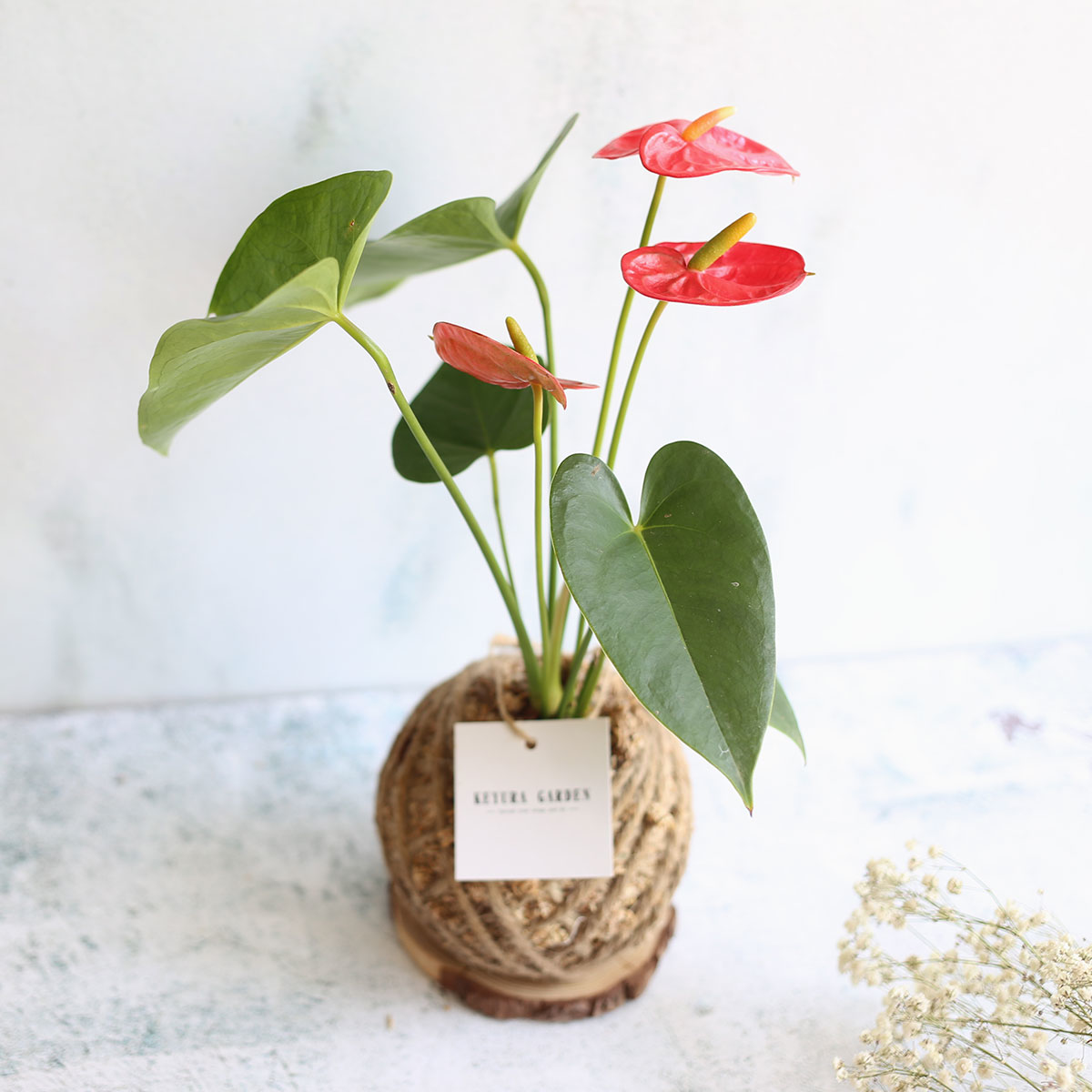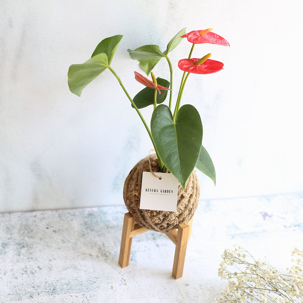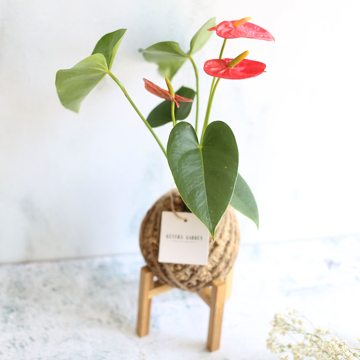 若將火鶴花盆栽擺放於於室內窗邊光線明亮的地方, 會比較能夠能夠持續開花, 而且每個花序觀賞期可達7~8週之久喔!