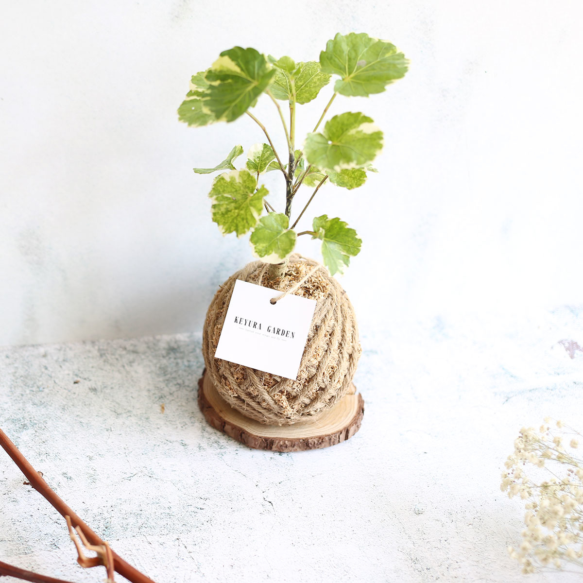 黃金福祿桐苔球包裹水苔製作而成