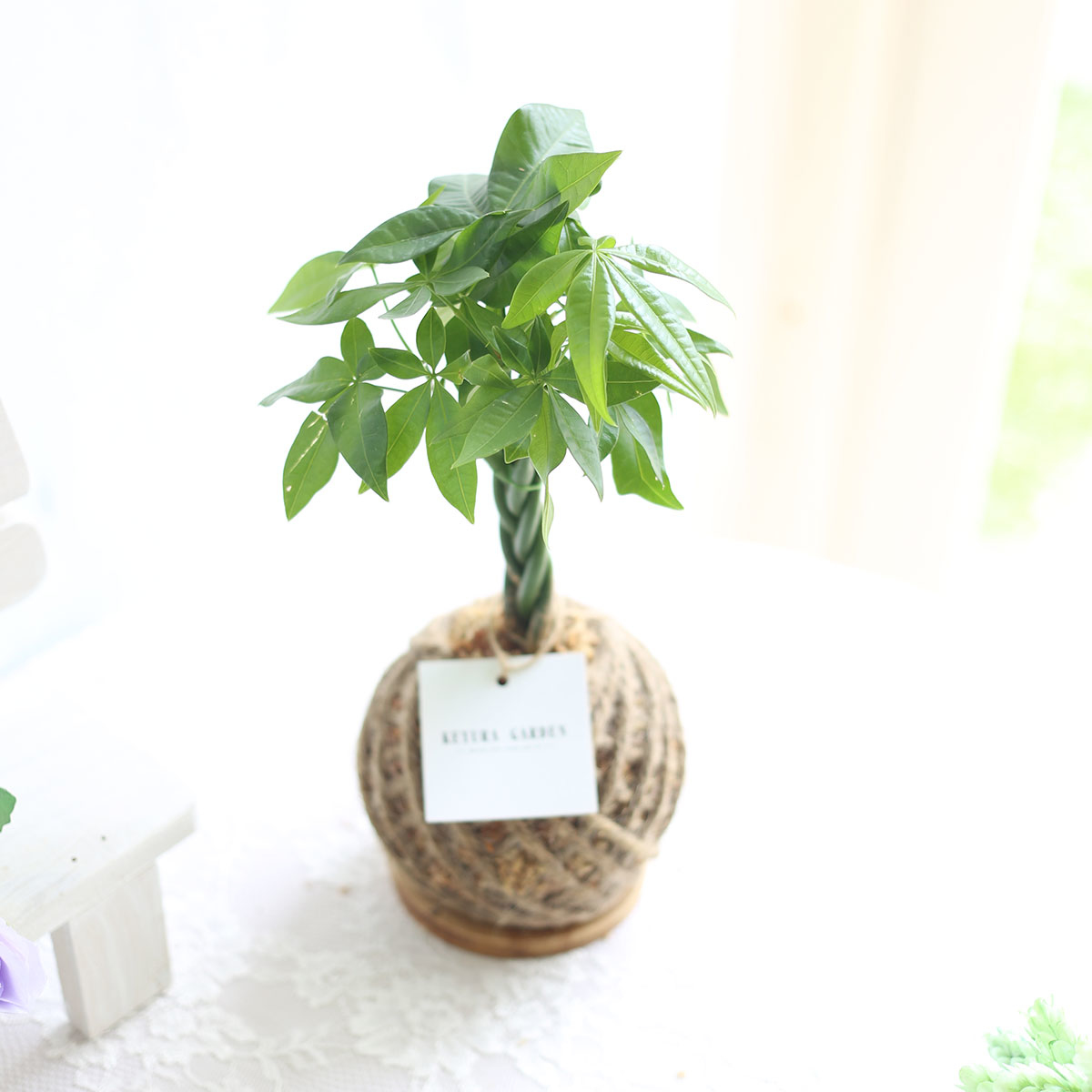 馬拉巴栗苔球包裹水苔製作而成