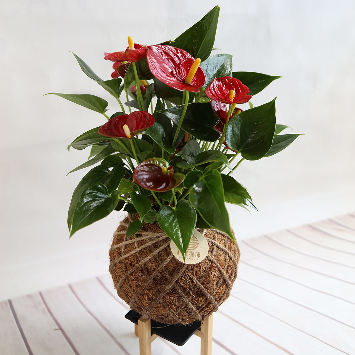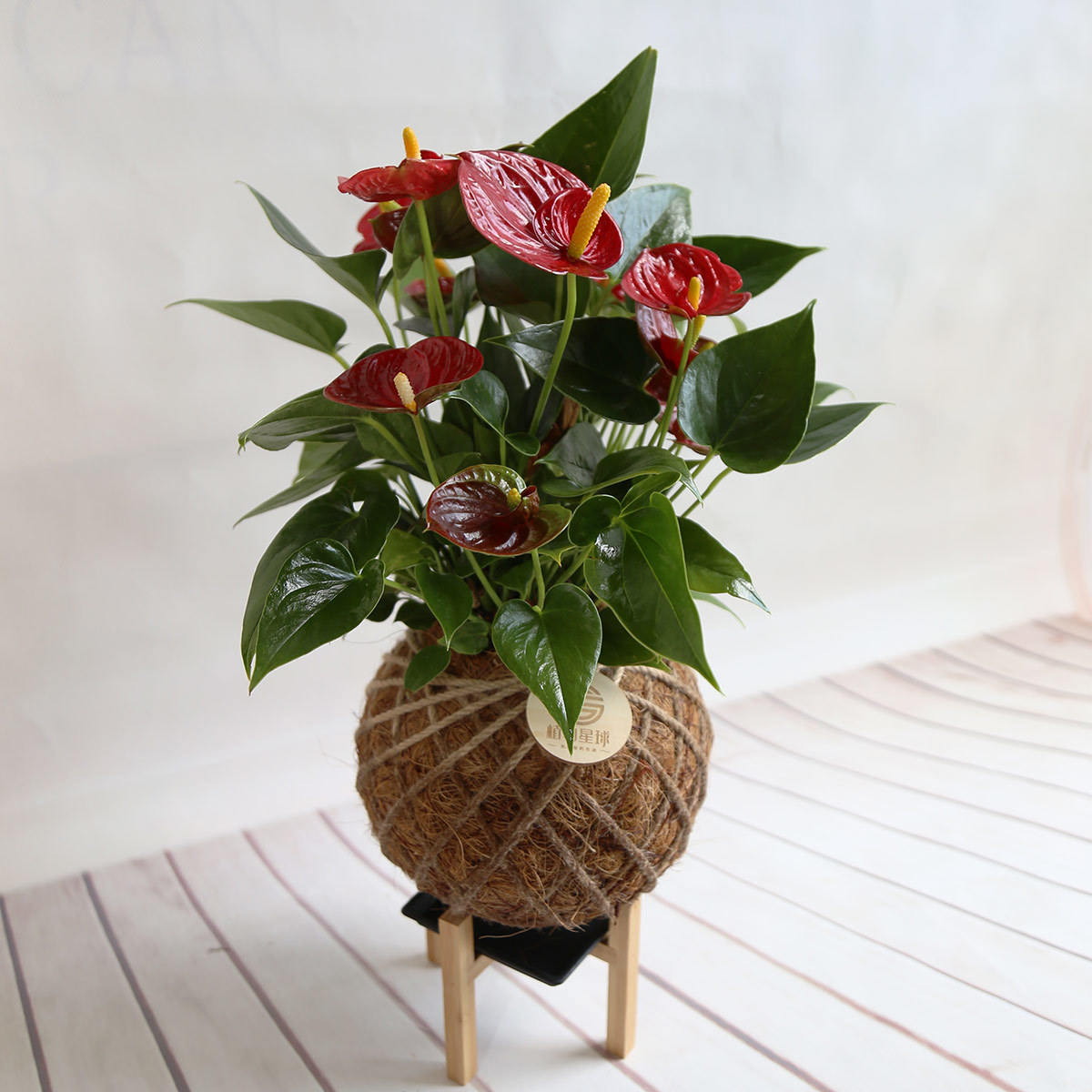 若將火鶴花盆栽擺放於於室內窗邊光線明亮的地方, 會比較能夠能夠持續開花, 而且每個花序觀賞期可達7~8週之久喔!