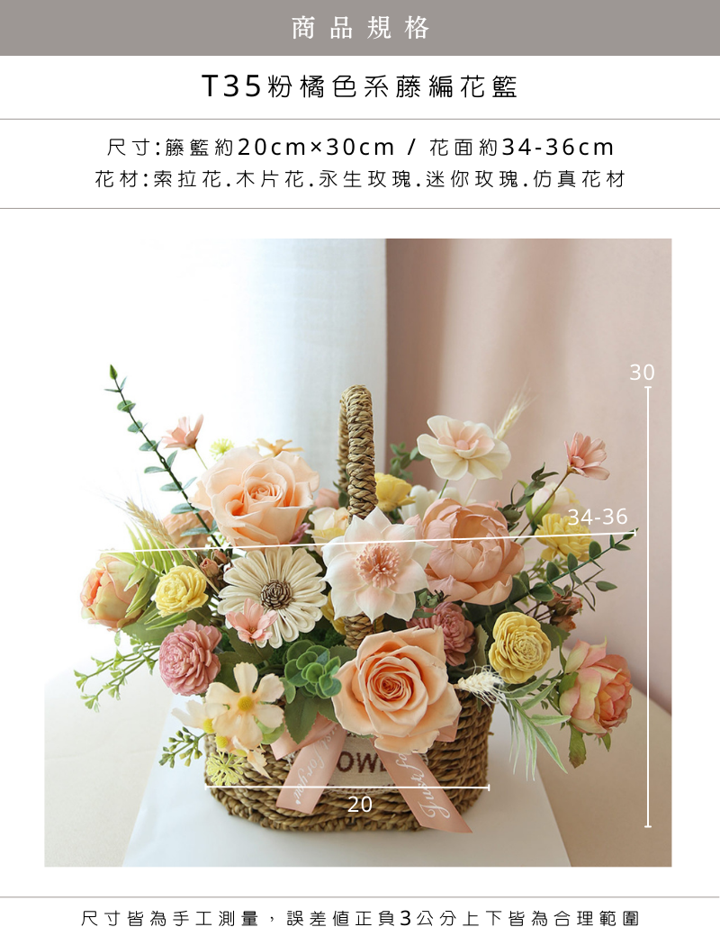 T35|粉橘色系藤編花籃