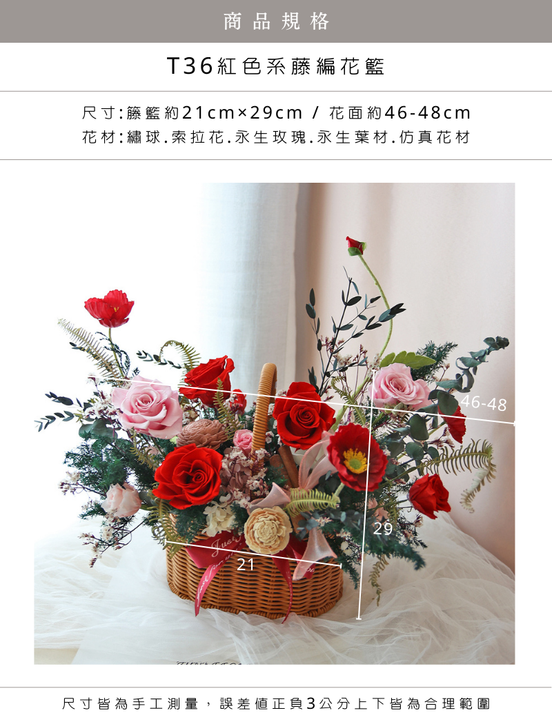 T36|紅色系藤編花籃