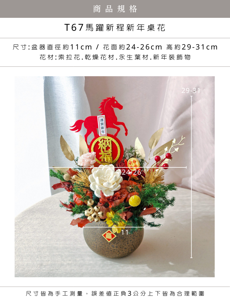 T67|馬躍新程新年桌花|乾燥花/永生葉材|馬年花禮/新年盆花