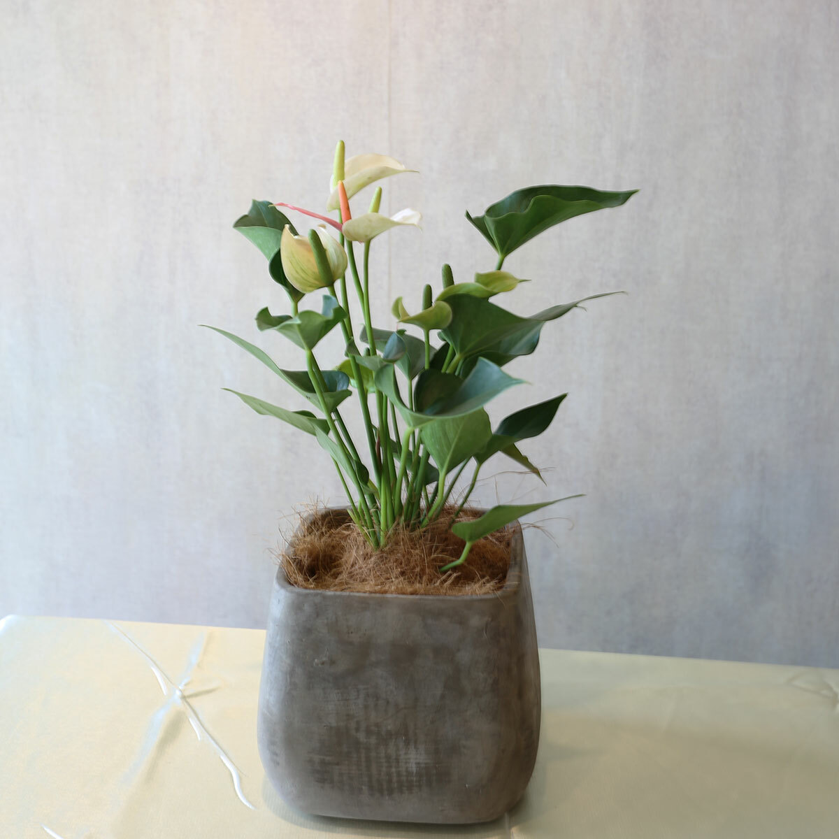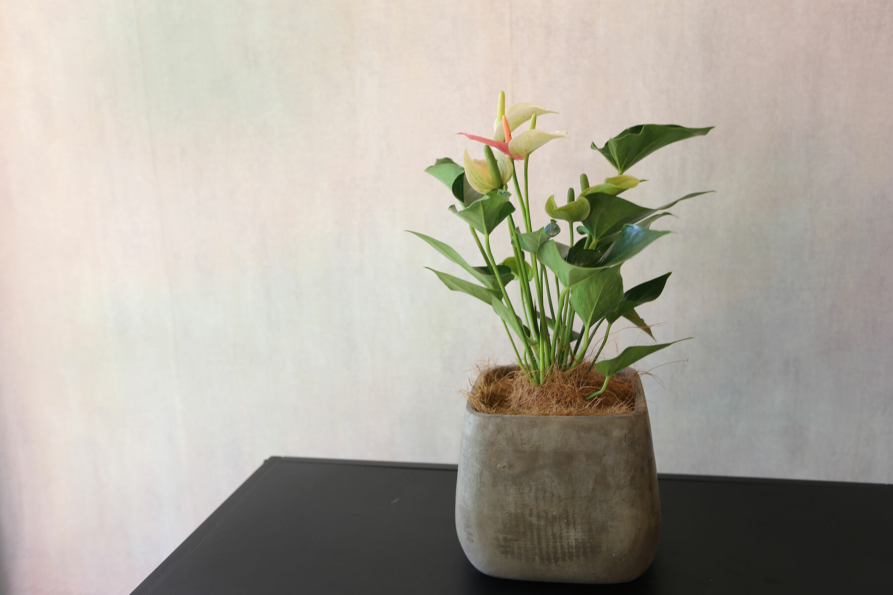 PD75|粉紅火鶴方形水泥盆