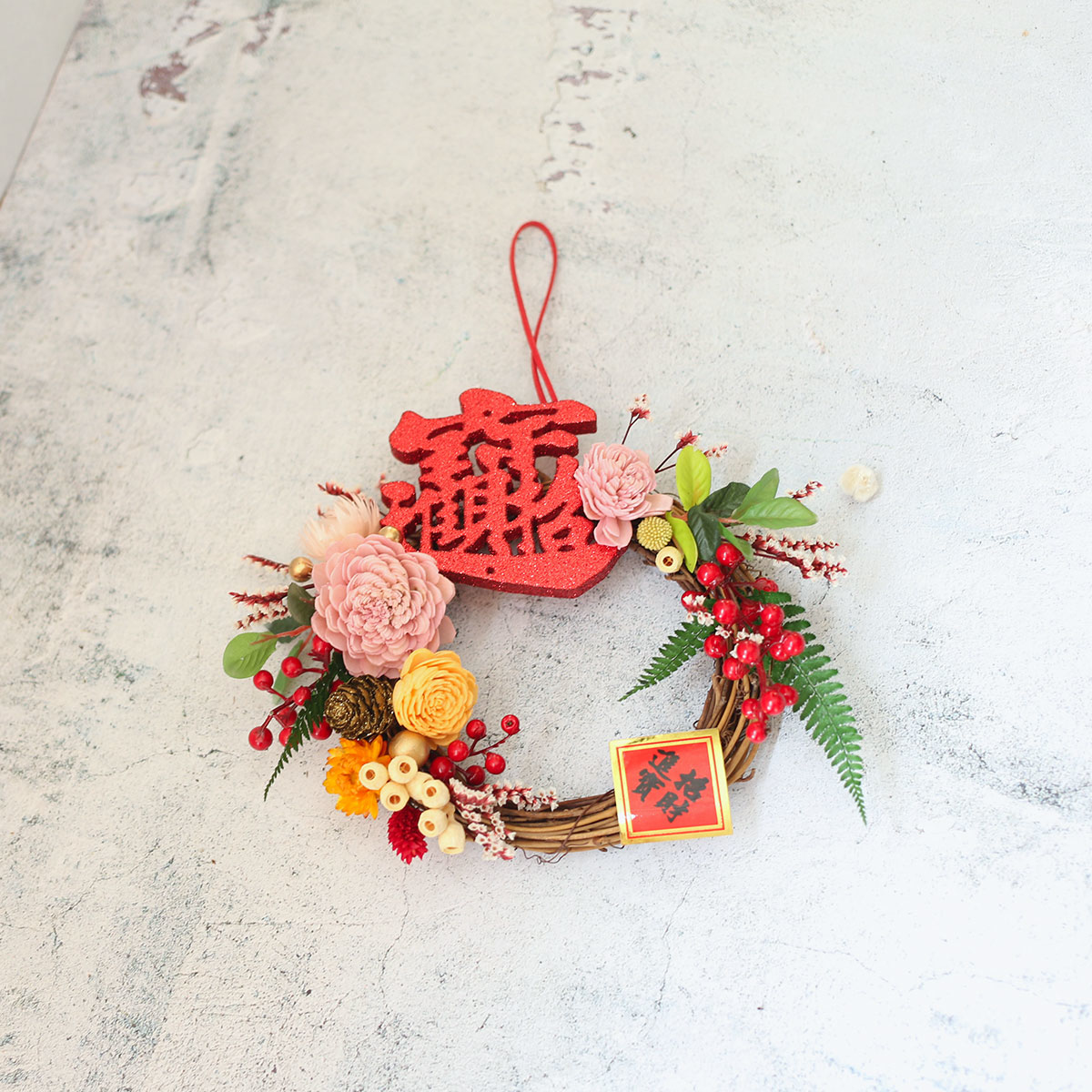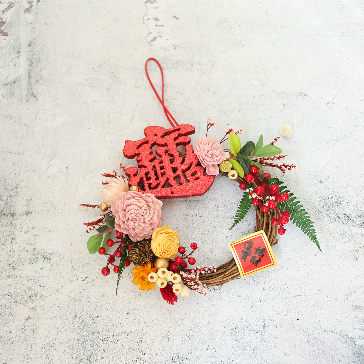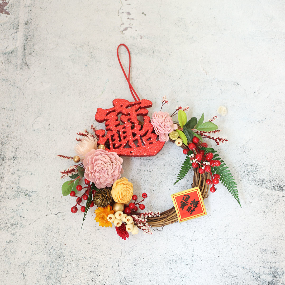 WR27|新年花圈/春節掛飾|乾燥花/索拉花/高擬真花