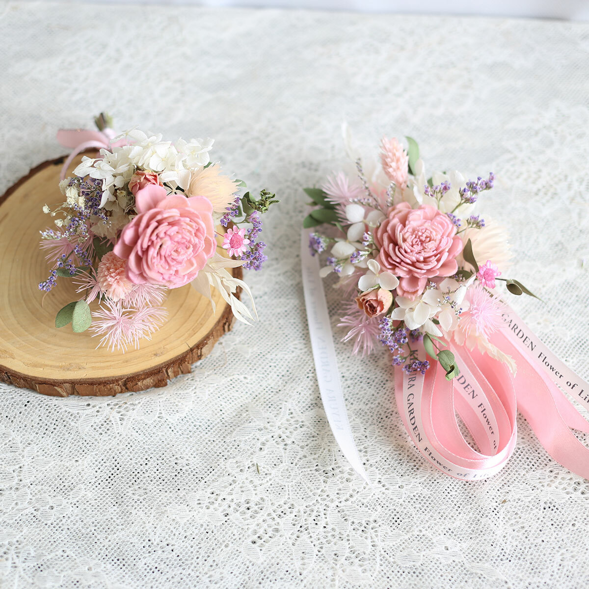 由永生花繡球.索拉玫瑰搭配乾燥花製作
